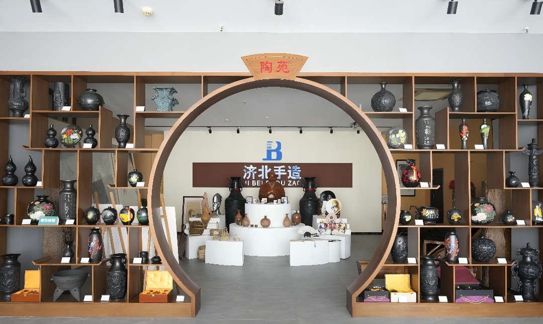 作為濟(jì)陽區(qū)非遺文化的重要展示窗口,展廳始終以傳統(tǒng)技藝類產(chǎn)品為核心支柱。升級后,黑陶的古樸厚重、老粗布的經(jīng)緯溫情、木作的匠心巧思、剪紙的靈動鮮活、柳編的自然質(zhì)樸,以及黃河五彩陶、刻瓷、烙畫、彩塑等十余項代表性非遺手造產(chǎn)品依舊悉數(shù)亮相,每一件作品都承載著當(dāng)?shù)亟橙藬?shù)十年的技藝沉淀,全方位呈現(xiàn)了非遺文化的深厚底蘊(yùn)與獨(dú)特魅力,讓觀眾在參觀中直觀感受傳統(tǒng)手造的文化溫度。