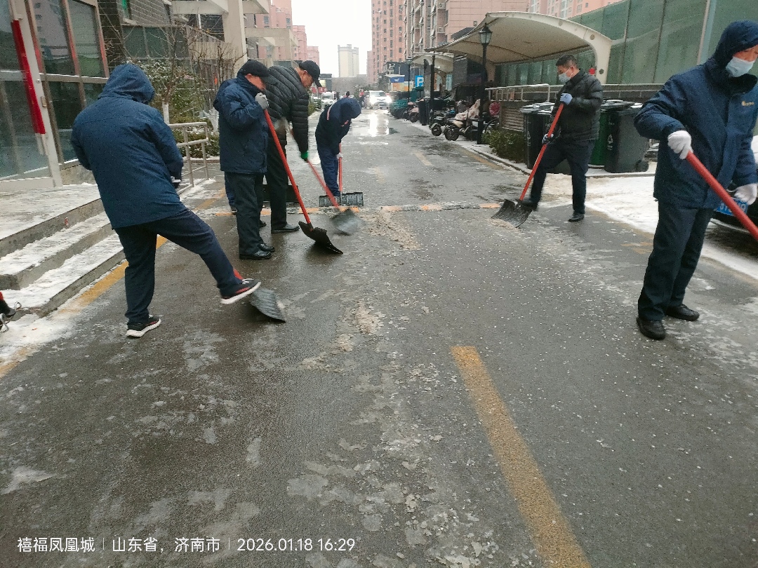 長(zhǎng)田物業(yè)禧福鳳凰城項(xiàng)目部,聚焦業(yè)主出行路。結(jié)冰路段的隱患,在物業(yè)人的忙碌中消解。沒有驚天動(dòng)地的舉措,只有腳踏實(shí)地的堅(jiān)守,護(hù)佑每一次清晨的出發(fā)、日暮的歸途。