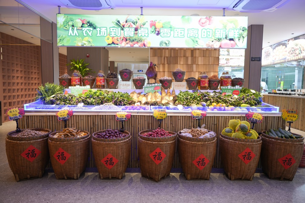 儀式結(jié)束后,嘉賓們共同進店參觀指導。城市農(nóng)場餐廳板塊創(chuàng)新打造“黃河文化主題包間群”,以黃河干流途經(jīng)的九大省份及入魯后流經(jīng)的九座城市為命名體系,構(gòu)建起獨具特色的空間敘事。每個包間通過魯錦、蜀繡、唐卡、剪紙等非遺藝術(shù)裝置,立體化呈現(xiàn)沿黃地域的文化基因,讓消費者沉浸式感受“一河串聯(lián)千年文明”的文化魅力。