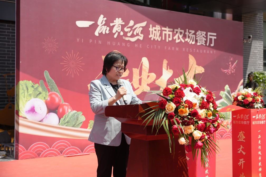 于主席發(fā)表講話,她講到,長田實業(yè)以“敢為人先 追求卓越”的精神,深耕七大業(yè)態(tài),從濟陽區(qū)首家城市綜合體到全區(qū)規(guī)模最大、標準最高的蛋雞養(yǎng)殖場,從首家泉城紅色物業(yè)到鄉(xiāng)村振興“三產(chǎn)融合共生”模式實踐,打造了一個又一個“濟陽標桿”,彰顯了做“現(xiàn)代城市服務(wù)商 美好生活引領(lǐng)者”的企業(yè)精神。她指出,在鄉(xiāng)村振興的征程中,長田實業(yè)打造了“萬企興萬村”濟陽樣板。如今的濟陽街道董家村,街道整潔、民居錯落,研學團隊不斷,省級非遺龍格黑陶研發(fā)中心與濟水春秋博物館盡顯文化底蘊。從市級貧困村到“全國文明村”,董家村的蝶變,正是長田實業(yè)產(chǎn)業(yè)反哺鄉(xiāng)村、情懷融入熱土的真實寫照。她強調(diào),一品黃河是濟陽首個以黃河文化為主題、以三產(chǎn)融合為路徑的鄉(xiāng)村振興項目,創(chuàng)造三個“新”:搭建農(nóng)產(chǎn)品銷售新平臺,對接濟南市場,推廣濟陽農(nóng)業(yè)品牌;成為農(nóng)民增收新引擎,直采模式縮短鏈條,實現(xiàn)雙向共贏;樹立餐飲經(jīng)營新標桿,非遺元素與特色菜品融合,注入文化內(nèi)涵。她希望,長田實業(yè)以此次開業(yè)為新起點,繼續(xù)發(fā)揮龍頭企業(yè)的帶動作用:與農(nóng)戶手拉手,深耕訂單農(nóng)業(yè),讓更多田間好物走向高端市場;與市民心連心,做優(yōu)消費體驗,讓黃河文化通過舌尖走進更多人心中。我們也將始終做好服務(wù),以政策扶持、資源對接、營商環(huán)境優(yōu)化為抓手,為企業(yè)發(fā)展保駕護航,讓“萬企興萬村”的生動實踐在齊魯大地結(jié)出更多碩果!
