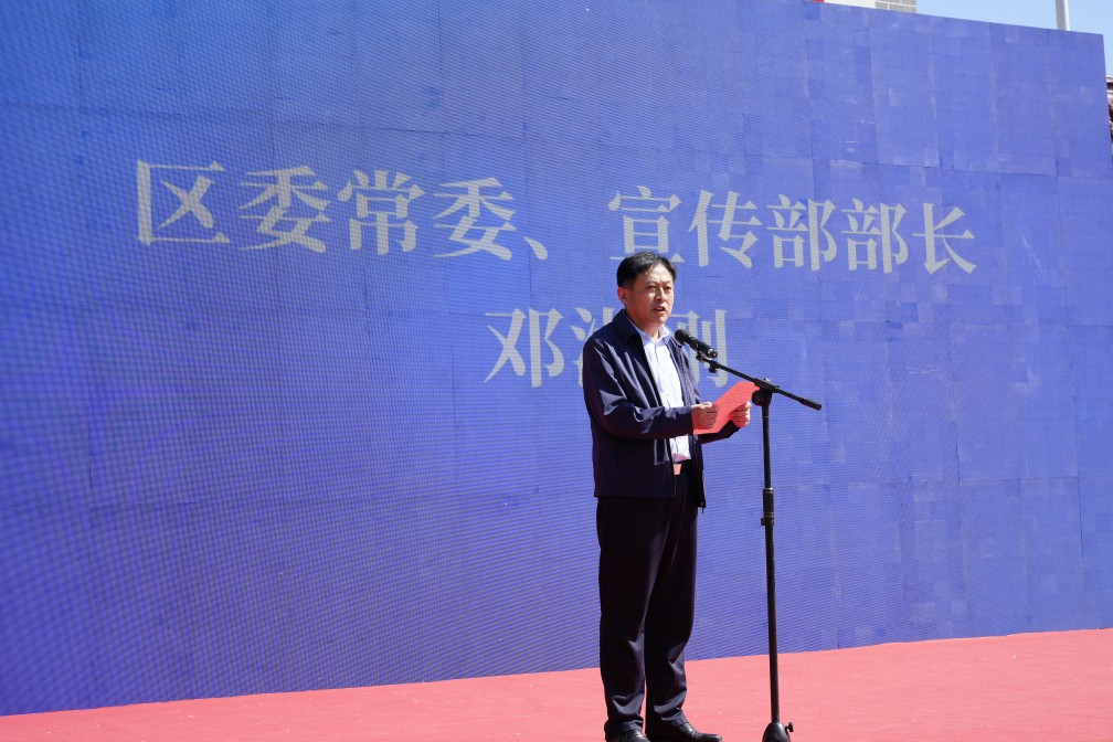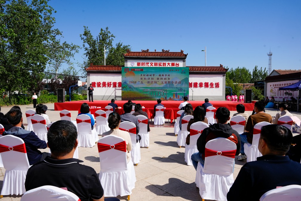 鄧部長(zhǎng)在活動(dòng)中發(fā)表致辭。他講到,濟(jì)陽(yáng),一座非遺活態(tài)傳承的“文化寶庫(kù)”。黃河奔涌千年,孕育了濟(jì)陽(yáng)獨(dú)特的人文基因。這里有起源于龍山文化的黑陶工藝,泥火交融間淬煉出“黑如漆、亮如鏡”的千年技藝;有列入國(guó)家非遺的鼓子秧歌,田間地頭的質(zhì)樸舞步,跳出了黃河兒女的豪邁氣魄;更有鉤繡、柳編等非遺手藝,一針一線(xiàn)、一編一織,凝結(jié)著濟(jì)陽(yáng)人民的智慧與匠心。他指出,五一正值春末夏初,濟(jì)陽(yáng)大地瓜果飄香、稻田如畫(huà):在“中國(guó)西瓜之鄉(xiāng)”仁風(fēng),采摘“富硒西瓜”,品味清甜;在垛石番茄園,體驗(yàn)“柿”界奇妙,感受豐收喜悅;漫步稻田研學(xué)基地,盡收“稻花香里說(shuō)豐年”的田園意境……更有非遺手造市集、黃河美食盛宴、民俗文化展演等等,可在沉浸式體驗(yàn)中觸摸黃河文化脈絡(luò),共享“詩(shī)與遠(yuǎn)方”。他表示,五一期間,將推出系列惠民政策,讓游客感受濟(jì)陽(yáng)人的熱情與真誠(chéng)。