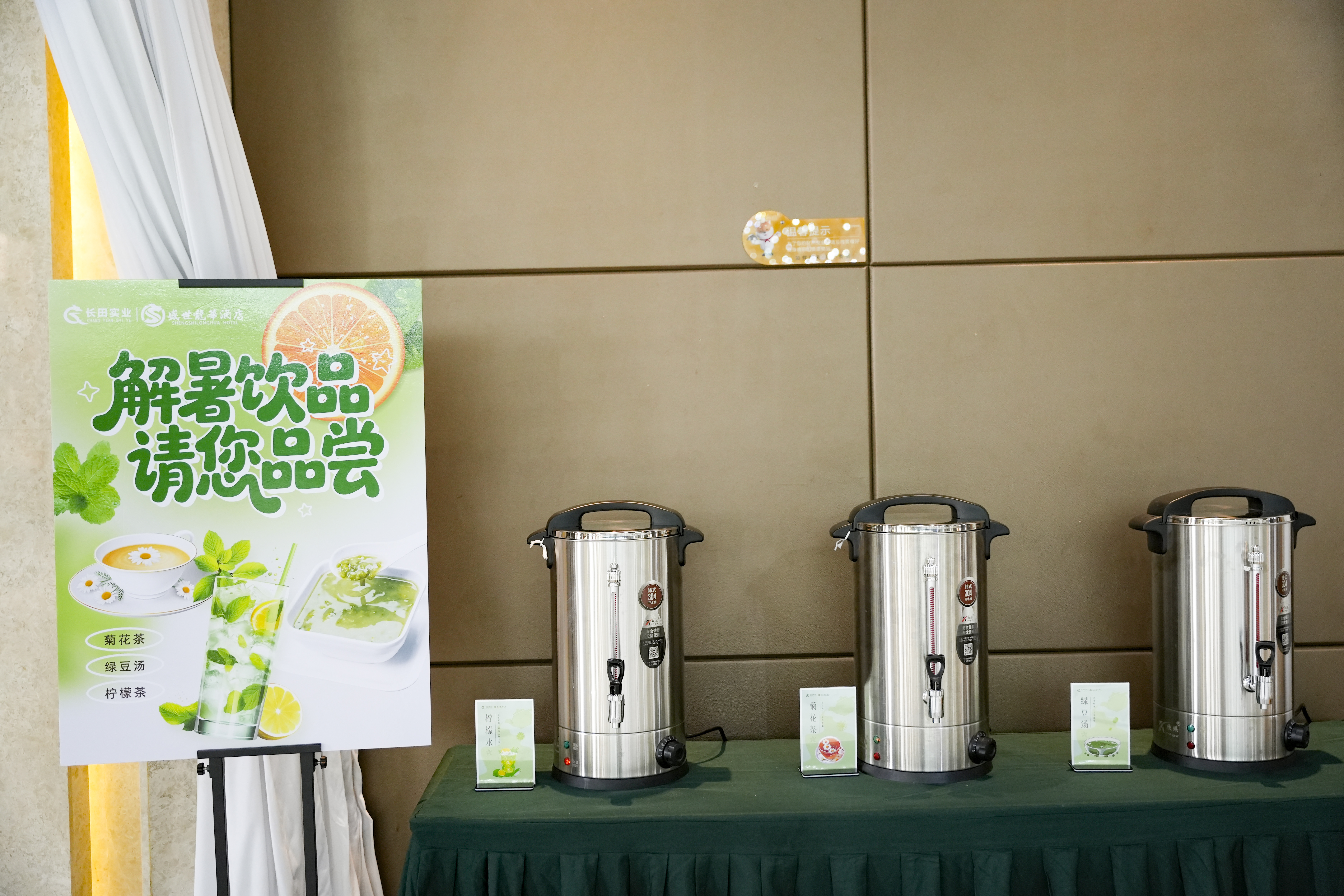 因夏季天氣炎熱,特意為老師們準(zhǔn)備了解暑飲品,其中有檸檬水、綠豆湯還有菊花茶。飲品旁邊放置有小卡片,卡片上標(biāo)注了茶飲的名稱(chēng),方便其進(jìn)行區(qū)分。細(xì)致入微的關(guān)懷讓監(jiān)考老師們?cè)诿β抵嘁材芨惺艿揭环萸鍥雠c舒心。