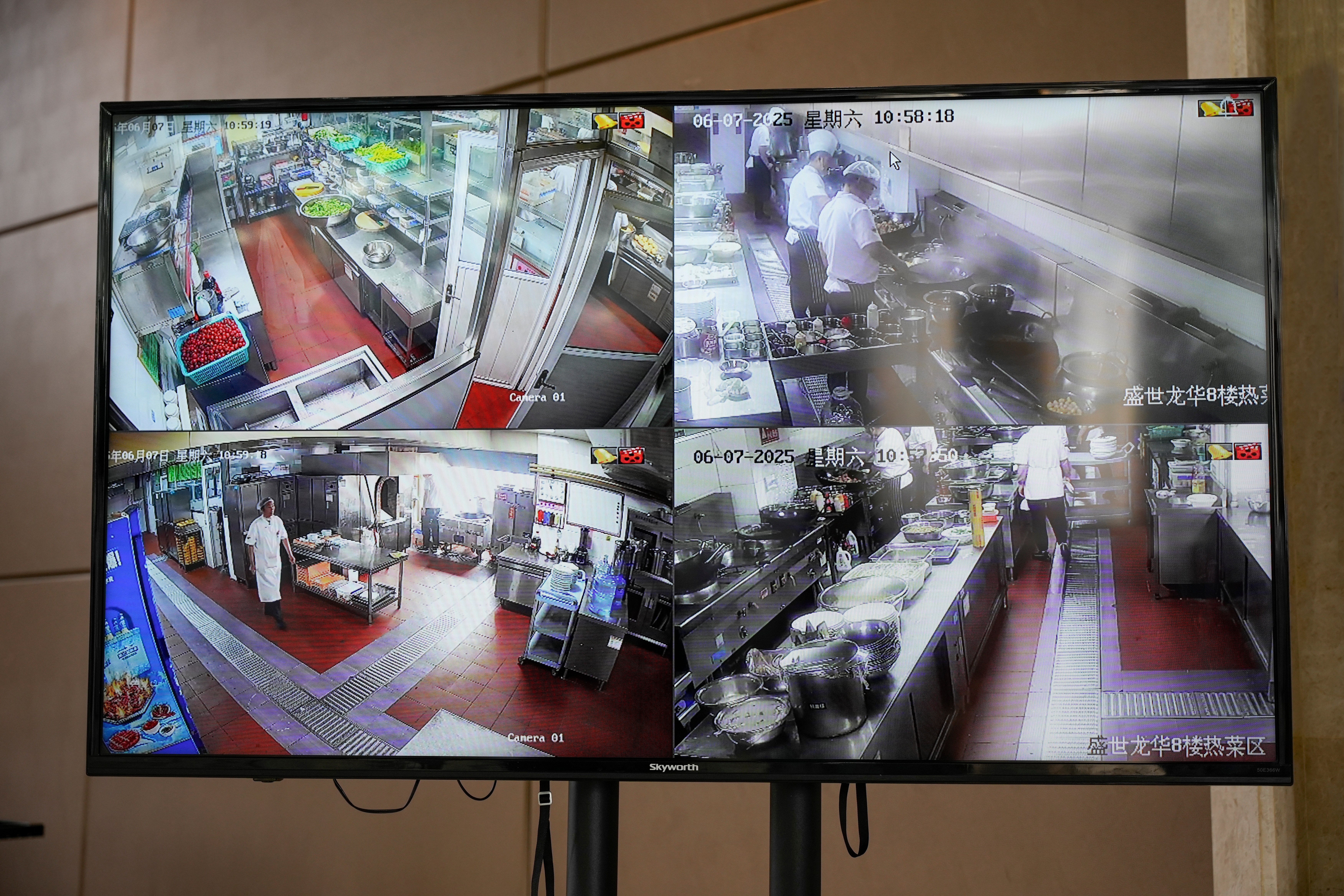 ▲九樓餐廳監(jiān)控顯示屏