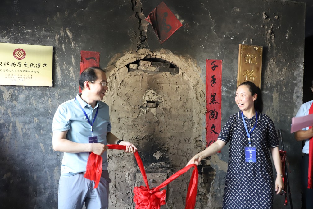 恰逢龍格窯第245次開(kāi)窯儀式,師生們共同見(jiàn)證了黑陶作品從窯爐中誕生的瞬間。整個(gè)開(kāi)窯儀式大致分成祭窯神和開(kāi)窯見(jiàn)寶兩個(gè)環(huán)節(jié)。吉時(shí)一到,擊鼓鳴鑼?zhuān)f重的開(kāi)窯納福儀式開(kāi)始,凈手、敬香、祭酒……